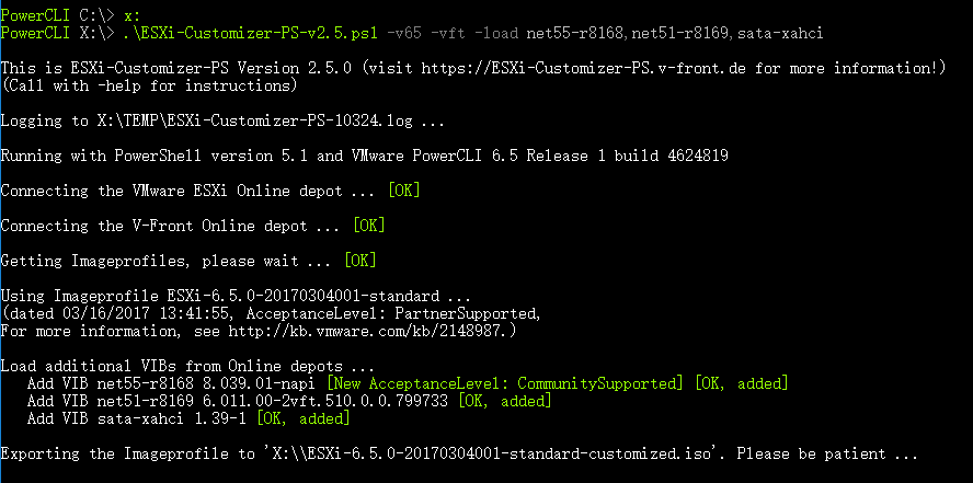 ##.\ESXi-Customizer-PS-v2.5.ps1 -v65 -vft -load net55-r8168,net51-r8169,sata-xahci